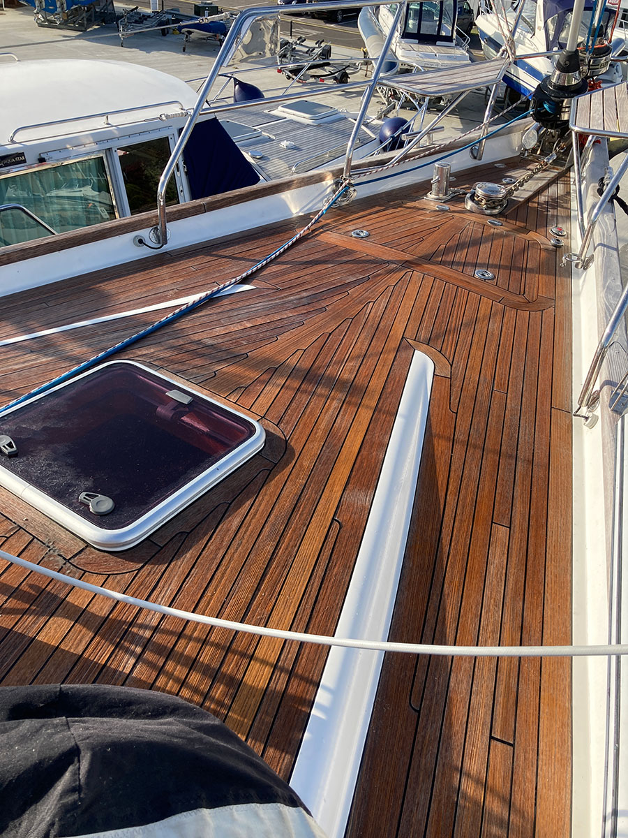 Jonny came home and insisted that I bought some 2-part teak deck treatment called "Teak Wonder". I was amazed it worked like a treat and the deck simply looks amazing, it is helpful to have a professional in the family.