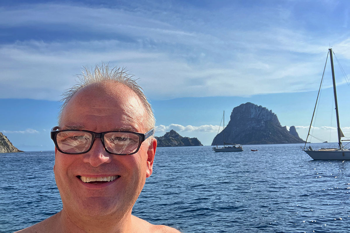 The next morning we set off to Ibiza, we headed straight to Cala d'Hort, this is a lovely anchorage that Linda and I had visited before the wedding so we knew exactly where we were going. We stayed two nights. Linda managed to buy a new bikini which is now her favourite and we ate at the same restaurant that Linda and I had visited on our last say.