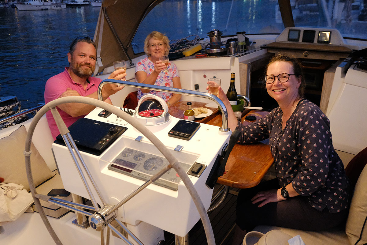 Later Susan and Andrew arrived by dinghy and a raucous evening was enjoyed in the middle of the river (Socially distancing of course).