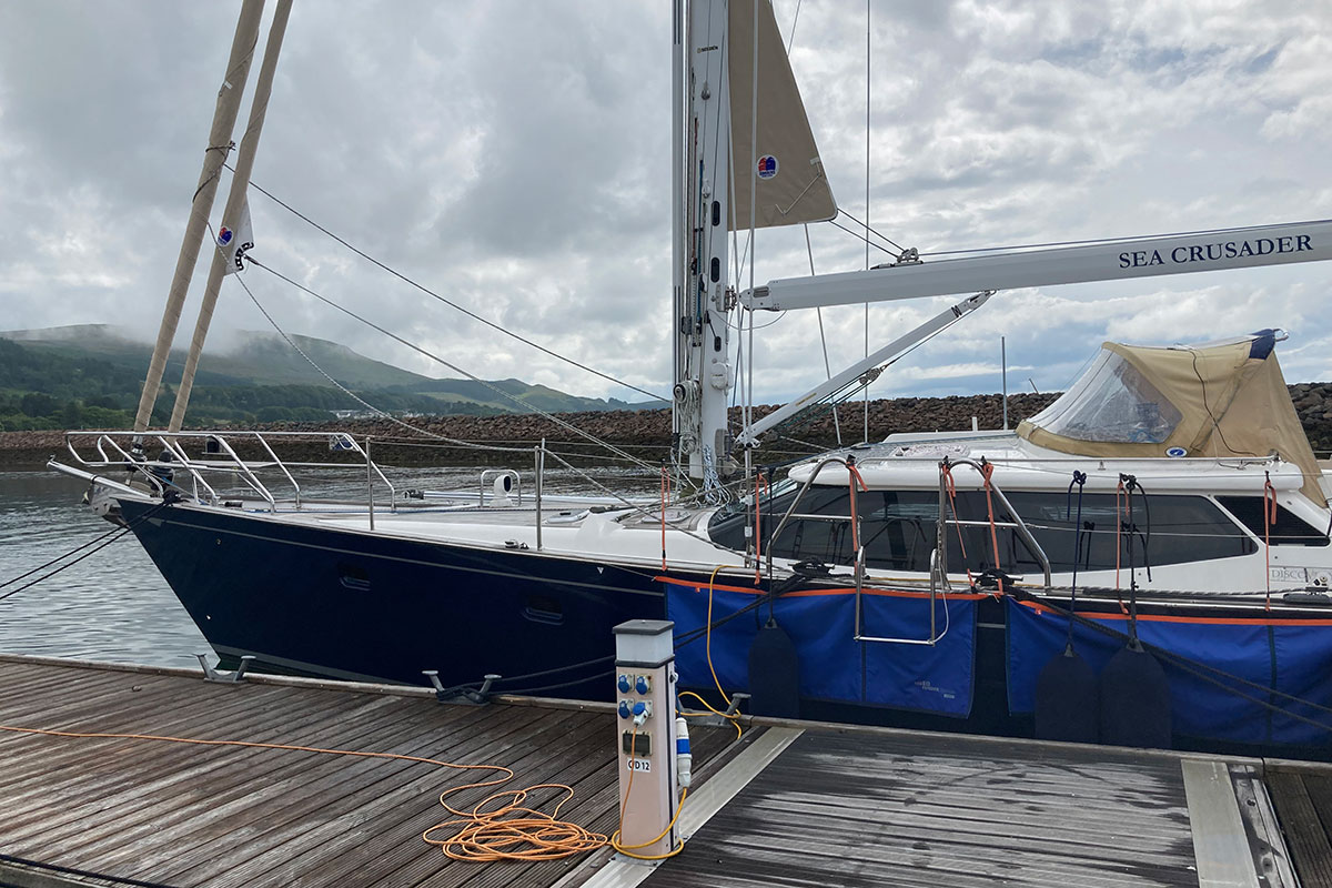 The entry into Largs was uneventful and we were soon tied up on the hammerhead they had kept for us. We were unable to get a table at Scotts the rather up-market restaurant attached to the marina but luckily we were able to get a table at "The Catch at Fins". There we had a very nice meal and kept an eye on the England - Ukraine match. When we left the restaurant the match was 1-0 to England so we went back tot he boat and switched on the iPlayer and watched it from where we left off. A well deserved win for England I think.