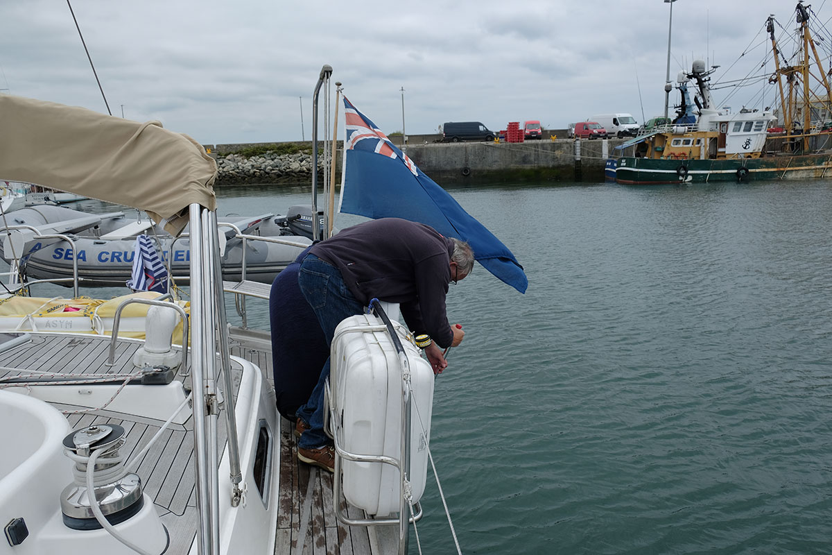 I called the harbourmaster and he confirmed that there was 5m in the entrance at the moment and we should be fine. All the charts show less that 1m at chart datum so there was at least 2m more water than shown on the charts with the tide included. We went in as instructed and the water was clear enough for us to put down a GoPro on a pole and film the propeller etc and … it was completely clear. We still need to check the boat when it is lifted for any damage but we were now confident we could continue our journey so after a 40 minute interlude we were off again.