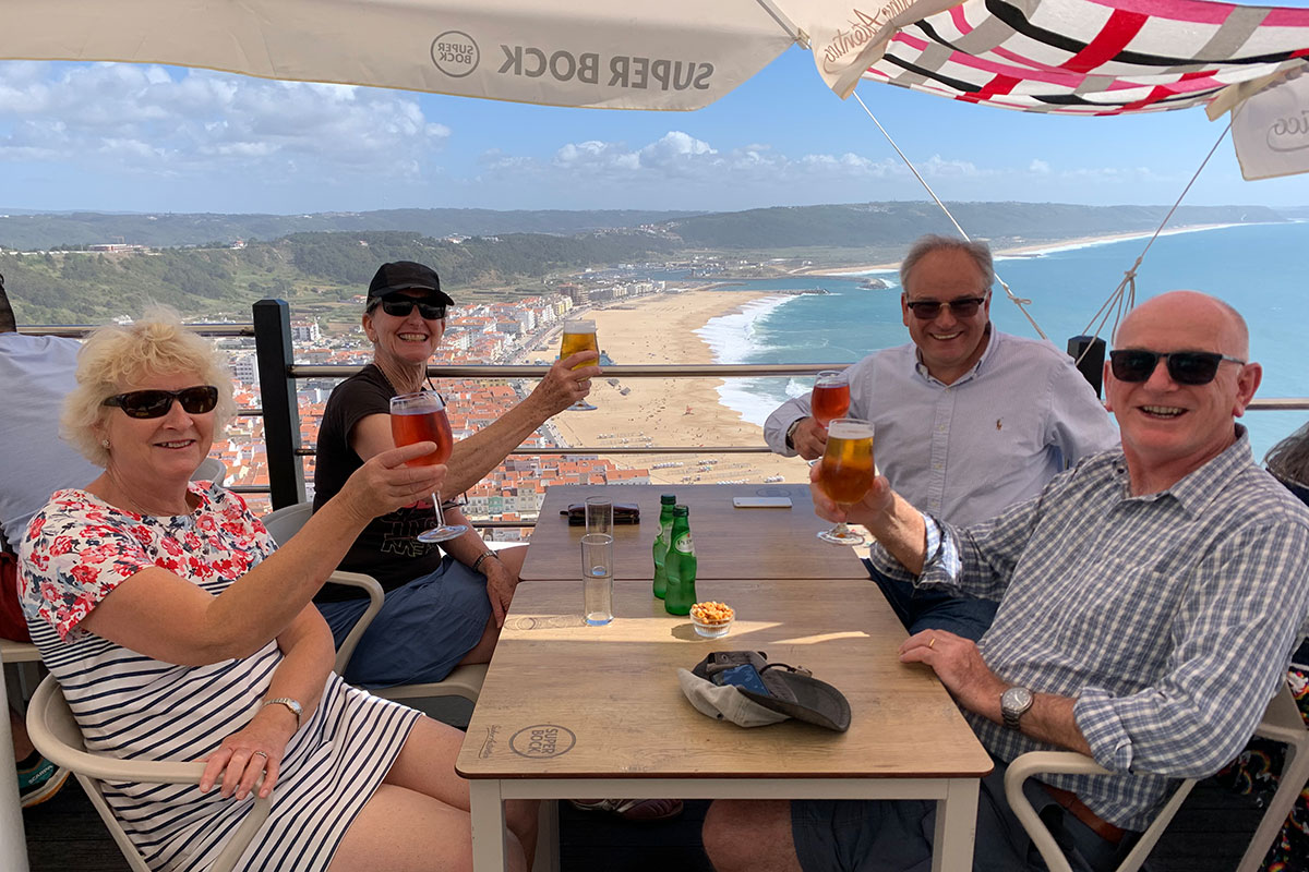 The WCC had not expected to be in Nazare so nothing was really organised except a fairly terrible lunch, which is not bad going because most of the meals have been brilliant. Afterwards we went up a cable car to the cliff top where we could see an overview of the bay and sat at in a bar drinking Rosé wine looking at the view.