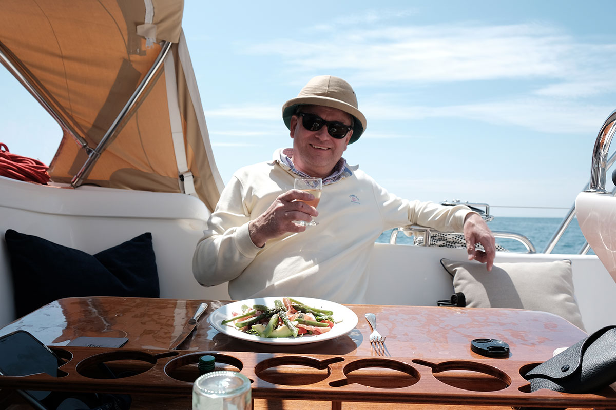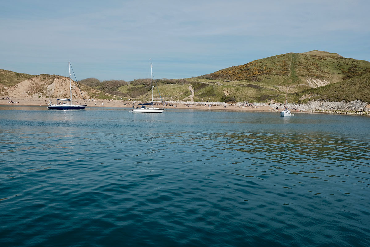 I woke at 4am and ugh it still looked dark outside and I had to resist the temptation to turn over and miss the tide… I didn't, I just stole 30 minutes and then got up quietly so not as to disturb Linda. I slipped the lines and gently headed out of the Hamble. There was not a lot of wind but it was two hours into the ebb so I was soon whisked down the Solent. We had easterlies and so I had decided to head to Worborrow Bay, a bay that Linda and I have not been to in over 10 years. We had a lovely sail all the way until… about three or four miles from St Alban's head. I had run out of tide so now it was wind-over tide and for those that don't sail it means it is stomach churningly good. Not the best first sail of the season, that 30 minutes cost me dearly! One thing I had found out was that the Pith Helmet that Jonathan had given to me for my birthday makes the perfect sailing hat. It is cool and does not blow off in the wind and keeps the sun both out of my eyes and off my head.