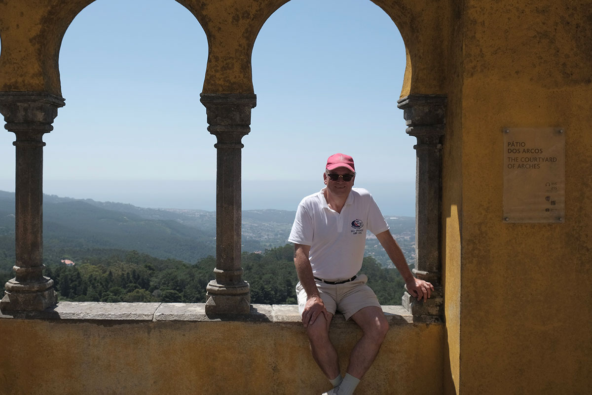 In we went and off he set with his 4-stroke TukTuk singe cylinder engine upon which we were sitting! Oh my what a vibration, this is not the way to travel and yet it was great. He could fit that thing in the most unlikely of places and simply pulled over to the side of the road as though he was on a bicycle where upon he told us about the history and architecture of the building, it was great. Along we went up the hill towards the Palace of Pena and he suddenly pulled over to the left and took us into the woods and said "now this is the best bit of the tour" and through the woods there was an opening and from it we could see the Moorish Castle, the Palace of Pena and the Palace of Sintra.