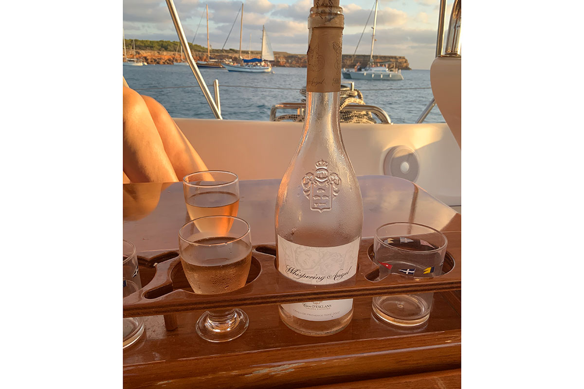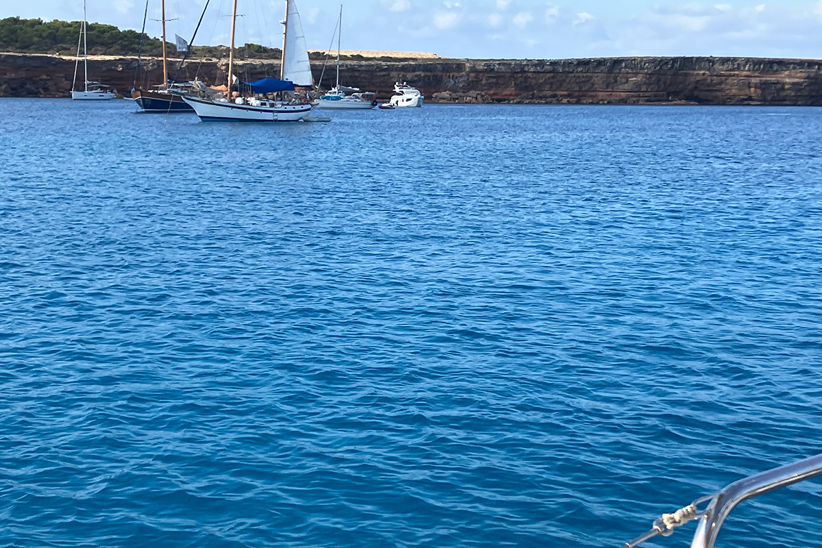 We arrived on Formentera at around 7:30pm, I had selected an anchorage called Cala Saona as it was a big anchorage and should be an easy place to stop with no complications incase we were late arriving. Our friend Keith Jones had recommended Esplamador but it seems in July and August it is filled with buoys and you need to book in advance. We decided to go there another time. As soon as the anchor was down we were both over the side enjoying the refreshing feel of the azure blue water of the med after being slightly cooked under our awning (bimini). As soon as we were out of the water a celebration was needed and Whispering Angle came to the rescue, having been reserved away in the wine store for such an occasion. What a relief, we both slept well that night.