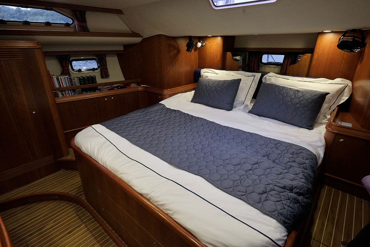 Yesterday we awoke to a foggy start, but we were really excited because because we were expecting Vanessa from Nauteriors to arrive with our new bedding. Vanessa arrived by boat and went to work fitting all our new linen and it is absolutely fantastic, highly recommended.
