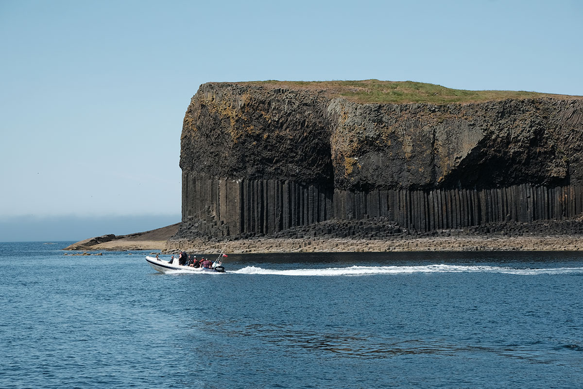 Eventually we decided that there is too much of Scotland to see to stay another night so at 10:30 we reluctantly pulled up the anchor(A mistake I think) and set off for Ulva via Staffa. Staffa is almost in a direct line from Iona to Ulva so we had to veer towards it to see Fingel's cave. It would have been much better first thing in the morning when the "tripper" boats would not have been there. Anchoring was not recommended because the area is rocky but some yachts were indeed anchored. After a few photographs to prove we had been there we continued to our chosen anchorage.