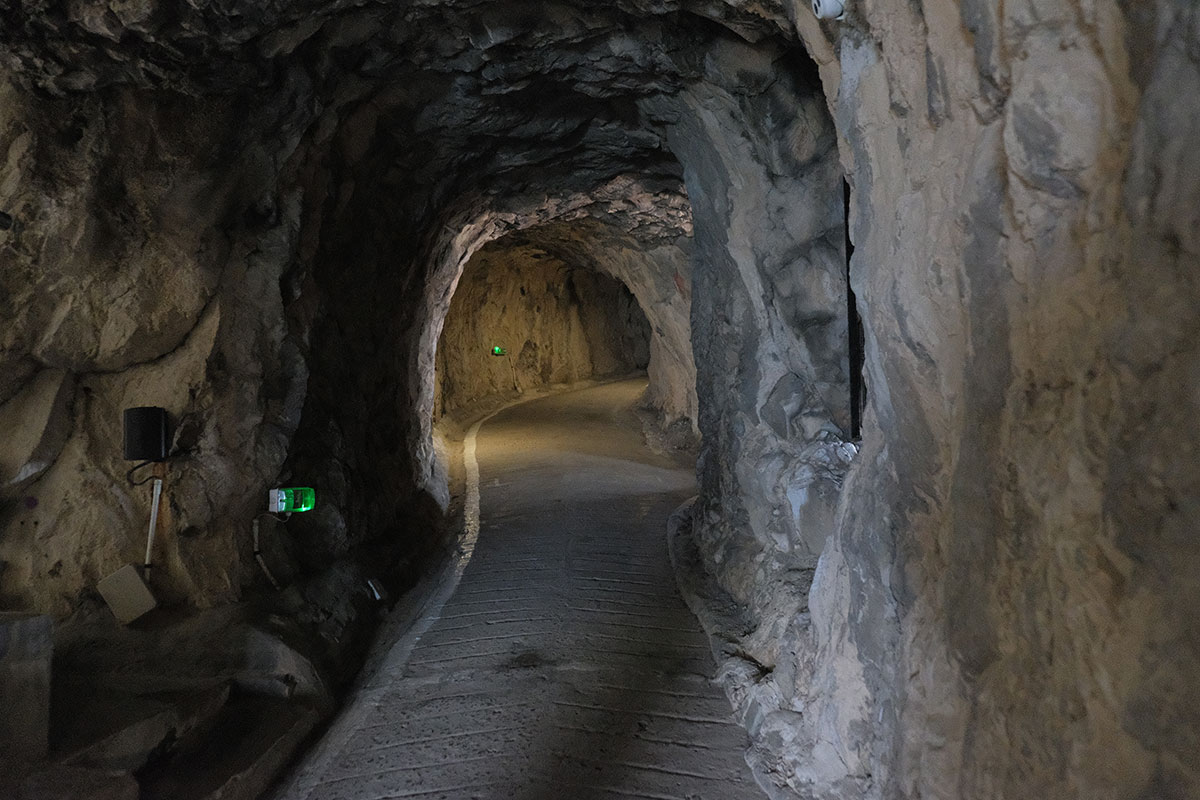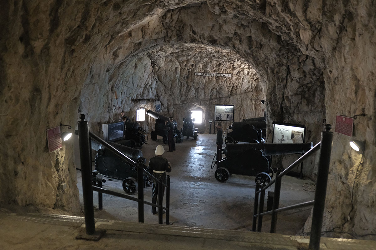 After this and with the oppressive heat Graham and Linda had had enough so they proceeded to walk the rest of the way down to the bottom. Ginny and I walked back up the rock on a gently inclining track to the northern side. Here we were able to explore the man made tunnels in the rock. The Rock of Gibraltar is like Gruyere cheese, it is literally full of tunnels. these tunnels lead to gun emplacements which render Gibraltar almost impregnable to attack. These tunnels were originally started in the eighteenth century but were further extended in the second world war.