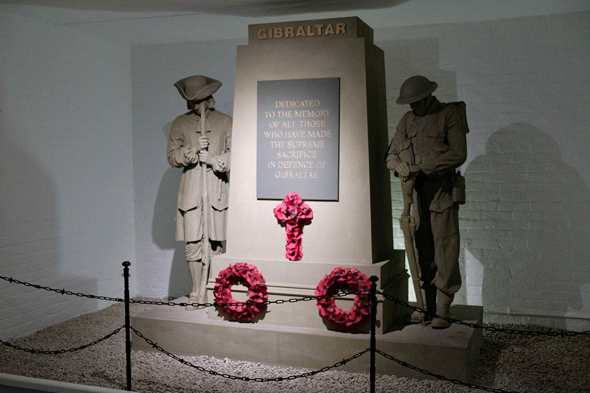 We walked down from there to a museum and it was quite small but as we walked in there was some quite calming music. As we moved into the next room there were two flags the wall a white ensign and the flag of the RAF in front of that was a sculpture of two soldiers in the form of a monument to the fallen of Gibraltar, it was quite a moving moment.