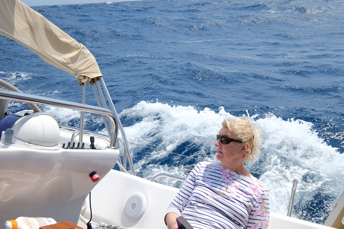 It is now Tuesday and as the day progressed the wind lessened and the seas quickly smoothed out. We were having a great sail with periodic visits from dolphins. As night approached the wind disappeared completely and we were forced to motor in smooth seas. I had a wonderful sleep with a full fours hours of undisturbed rest. Linda seems to have been the person best able to sleep on this trip which was fantastic as she has agreed to take the grave yard watch (Midnight to 3am).