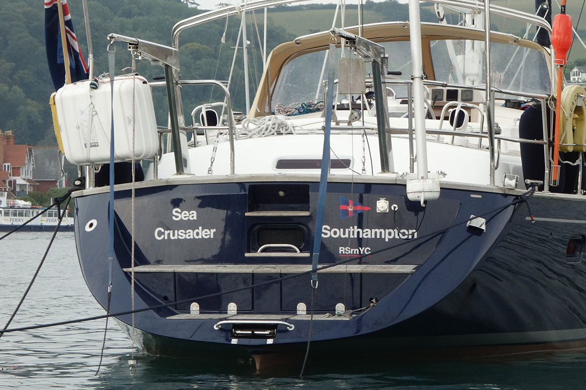 The boat was lifted and jetted of and then taken in the yard to Desty's to get the work done. Unfortunately the Copper-coating from the previous year has what I can only describe as the measles. We had a surveyor look at the work and he concluded that the original owners had had the boat epoxied and it had been under catalysed and that it was our responsibility to pay for it. It was a financial disaster because they had to grind the hull back to original gell coat add gel shield and then copper-coat again. In for a penny in for a pound we decided to paint the hull at the same time. The traditional choice is Allcraft 2000 or Algrip. Allcraft 2000 is repairable but very soft and we had it on Diamond blue and it was awful it used to rub off on anything. Algrip is so had it cannot be repaired. Luckily for us Algrip have a new paint out called HDT with is super shiny has a clear-coat on top and can be repaired. We also decided to modernise the appearance and smarten the boat up with silver boot stripe and what a splendid change it has made.