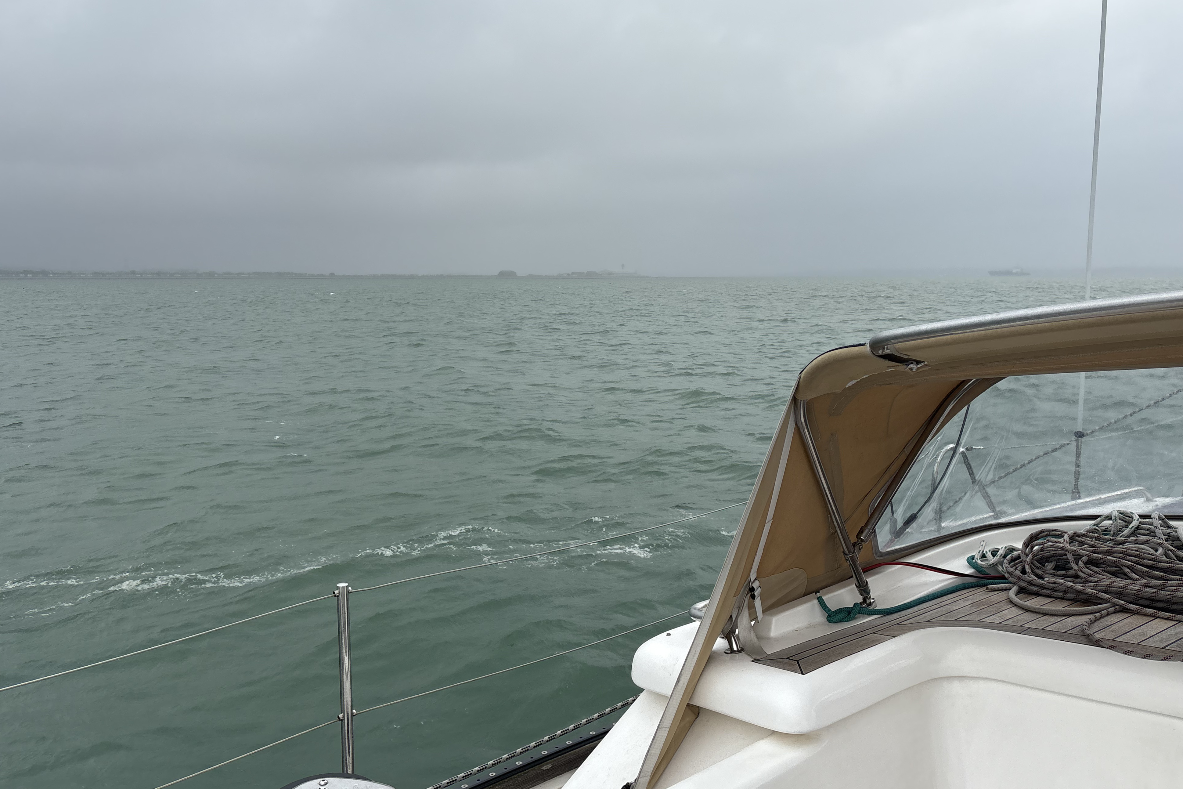 I don't remember hitting the pillow but I do remember Linda shaking me, we had sailed all the way from Roscoff in lovely weather and smooth seas, but Linda's first words were that the winds had got up. I had not undressed say to remove my life jacket so as soon as I had put it on I was back in the cockpit and sure enough we were tramping along slightly better than nicely. I put the genoa away and pulled out the jib. The boat felt much more in control and we were going almost as fast. I am not sure if I got any more sleep that night but at some point I took over and Linda went below to the saloon. The journey was uneventful but where we had left Roscoff in blue skies and sunshine we had arrived south of the back of St Catherine's Point with mist and a cold grey sky. As we approached it was clear we had arrived too early and despite sailing at 7-8knots when I turned to go up the Needles Channel we were now dead downwind, the boat slowed the waves were well not the biggest I have seen there but big enough to make a good video, but I didn't video it. I needed engine to assist as I was now making 0.8knots SOG (Speed over the ground). The engine was making an awful noise, there was not smoke no loss of performance but it didn't sound right it was a metal on metal sound. The Solent does not have a stand at low or high tide and so it was that as we reached Hurst the tide just switched so off went the engine, I have to investigate it when I get in my first thoughts are the turbo. With the tide on our side we were soon back on our berth and feeling really good about it. The holiday was over we had arrived back a few days earlier than planned but it is Ok we had a great sail and have avoided the effects of Erin which were predicted to bring 3m swells around the Channel Islands on Tuesday.