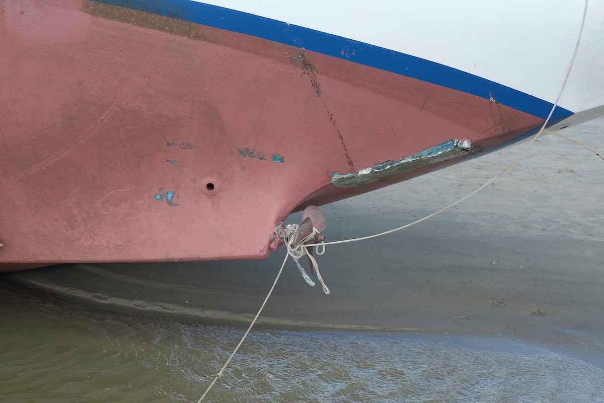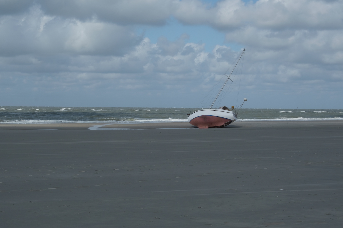 After lunch we went our separate ways for a couple of hours and I decided to see if I could find some seals on the beach. However the tide was out miles and it was a little nerve racking to walk over a mile possibly two to the water edge as I was concerned that the tide would come in behind me. However I did get there and I found a wrecked yacht that had foundered on Wednesday. I appears as though a rope was trapped around the propeller, however the locals are postulating if alcohol was involved. There was a full case of beer in the cockpit.