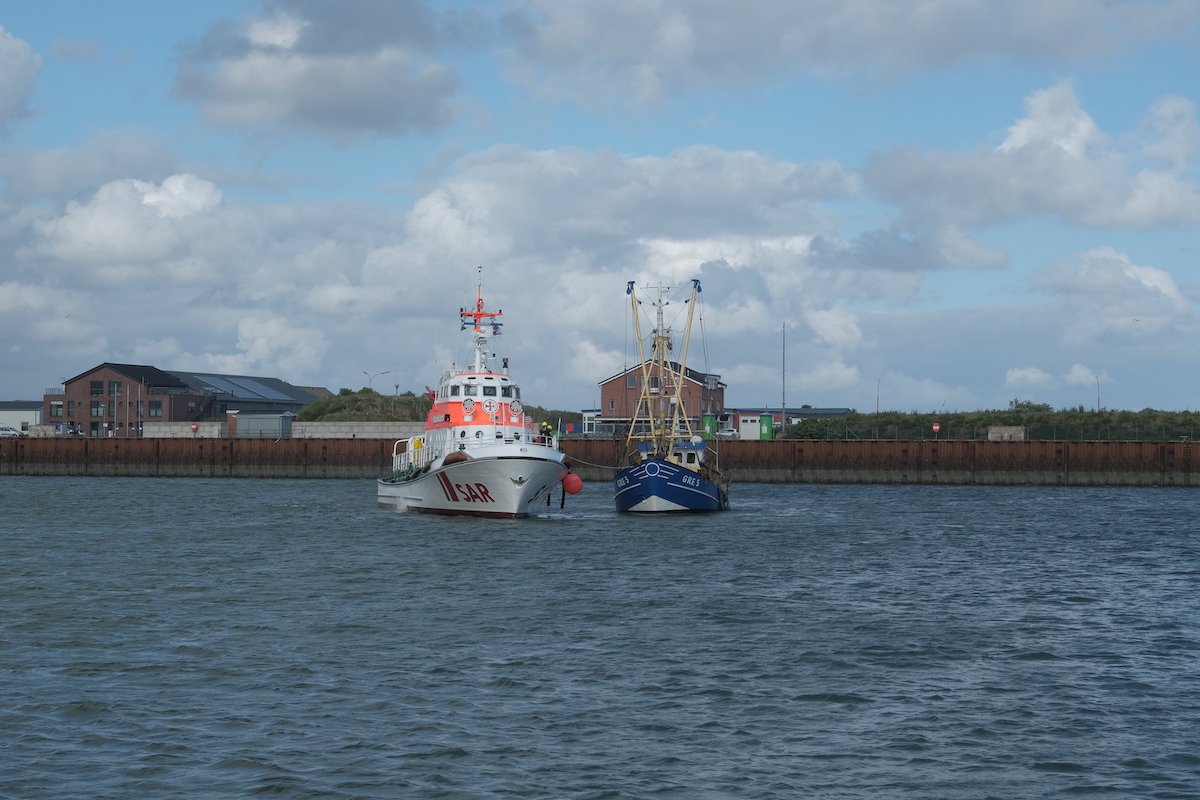Graham had used his time to climb to the top of the lighthouse 301 steps and reported that he saw a fishing boat try to leave the harbour but it did a u-turn. Later a fishing boat was towed into the harbour by the lifeboat, we don't know if it was the same boat.