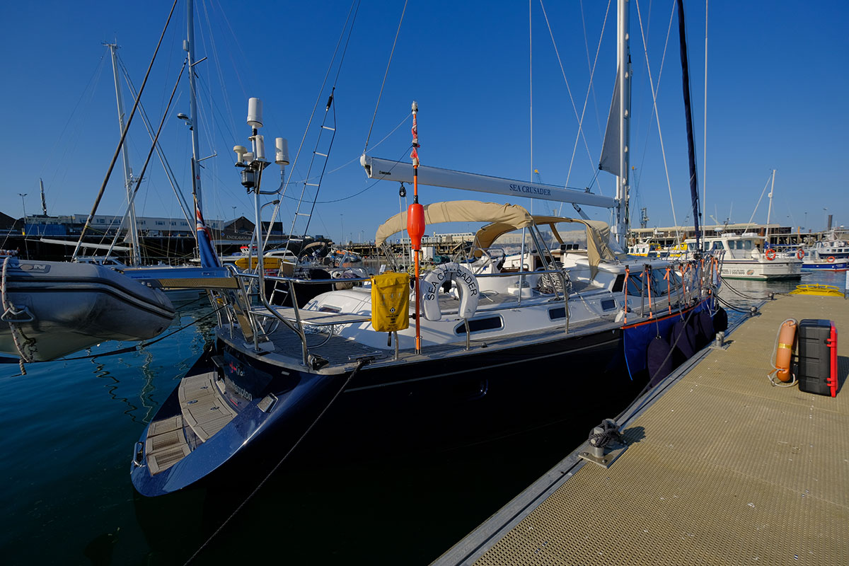 We arrived perfectly (This never happens) and we could see our boat speed change as the tide was at first against us and then with us as we were whisked up towards Guernsey. The thing was we were having such a nice sail and the wind had dropped and the navigational computer said we would arrive at 18:23. This was no great problem since it was not going to get dark until 10pm. I decided to call the harbour master just to let him know we were coming so that they would know to keep a space for our size of boat. The Harbour Master relied that Covid testing was open until 6pm so if possible we should try to arrive in time otherwise they would not test us until the morning and we would be in quarantine until the results were in. Much as we were enjoying the sail as we were only doing 5 knots through the water we out the engine on. We arrived at 17:45 and much to our delight and surprise our friends Susan and David Lyle were already in isolation on their boat Heodic, we were tested at 17:55!