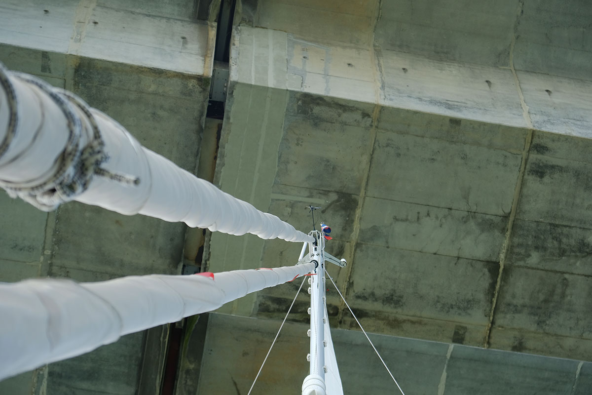 There wasn't a lot of wind but it didn't matter because we wanted to get into the inner basin and they only open the swing bridge around high tide so a slow journey was planned. As it happened we had little choice as there was barely 6knts of wind but it was just behind the beam and that means… the pink sail. We carried the pink sail for 6 ½ hours and averaged about 4.8 knots, it was not the most exciting sail but nevertheless were on for the 4:30 bridge opening, First we had to sail between Ile de Re and under the bridge. The bridge has a clearance of 30m so we should be well under that as we are about 24.5m including aerials.