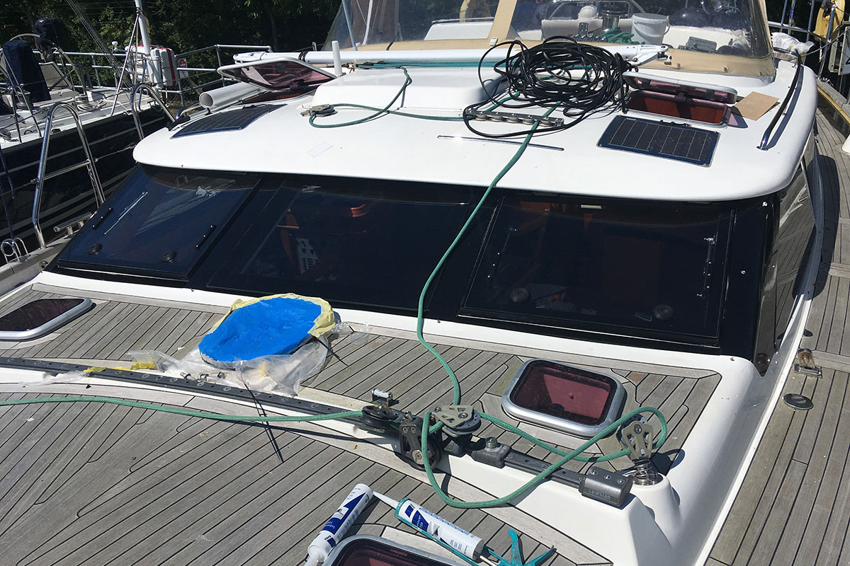 Any Discovery Series 1 owner knows the time will come when the windows will need replacing. We didn't really know how bad our windows were when we bought the boat but once we looked into it we knew we didn't want to replace like with like. The original windows were supplied by Houdini and they were a powder coated frame with double glazing. This seemed a good idea at the time but as we all found out powder coating aluminium in a saltwater environment does not work.