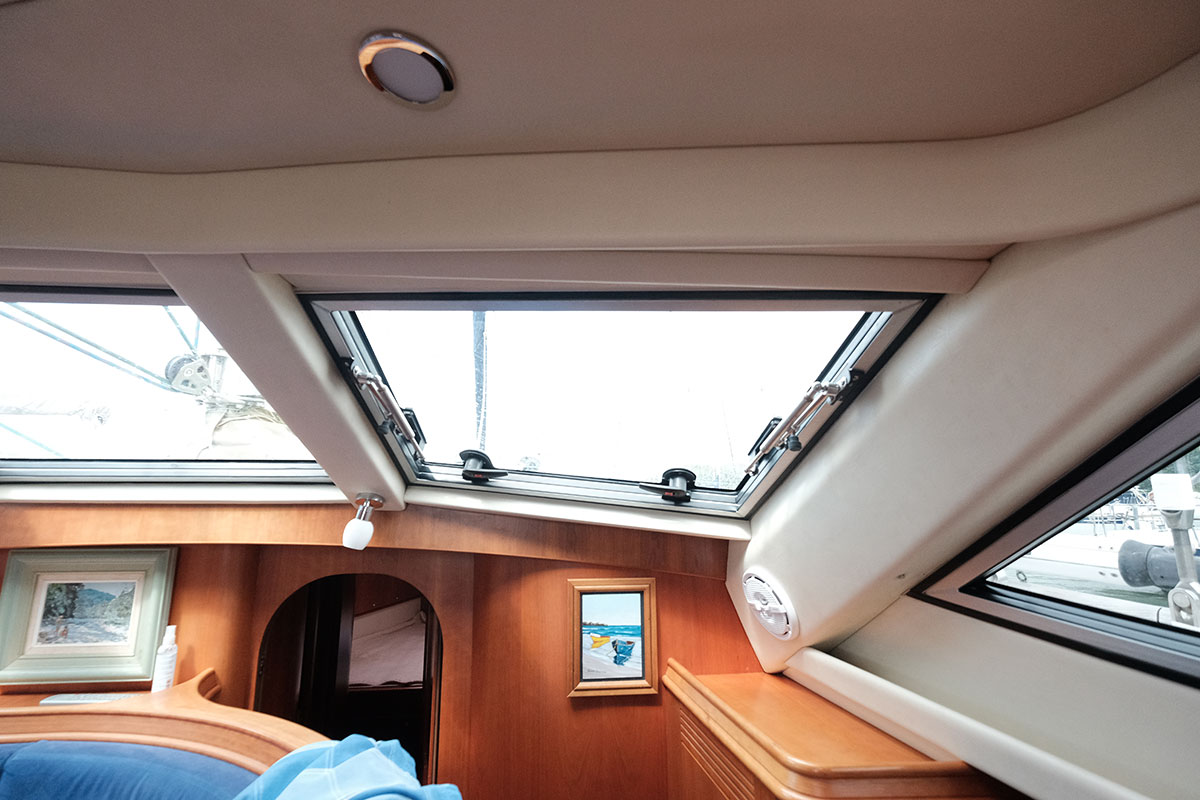Our options were to have anodised aluminium frames in standard silver or black anodised frames which we know will go brown in time. Neither option appealed. What we really wanted was frameless windows so that this issue would never rear its head again in our ownership. We contacted Discovery yachts who initially said yes, then said no. I spoke to Houdini and they too said no. So I left it.