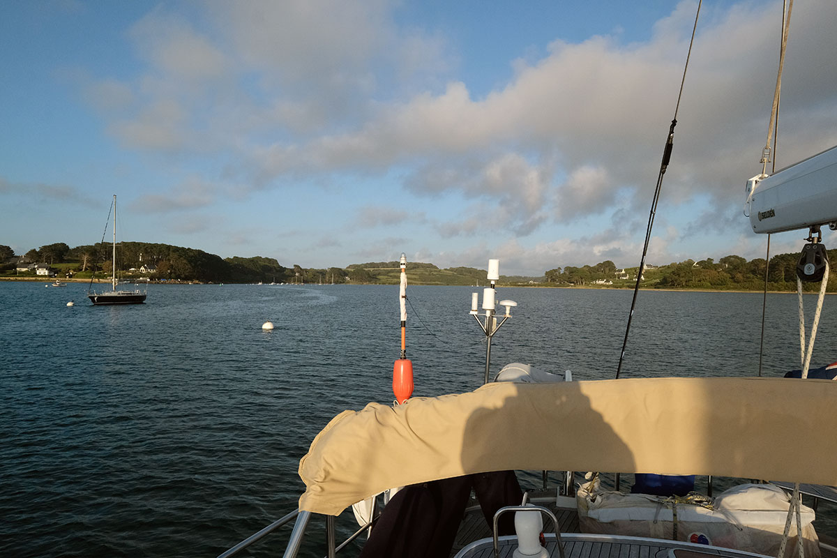 We had to wait for the north going tide so it was a late start and we left Camaret at just after 1pm. We had decided to go to L'Aberwach and as Ayaya had stopped there on the way in they had decided to go elsewhere so we parted company. The wind was coming from about the north west direction so we were able to sail the whole say without the need for our engine. We first tacked across the bay as we needed to tack west before going north up the Chenal du Four, the further west we would go the few tacks we would need to make progress north before we reached the point. The sea state was perfect and after about two hours we were rounding the point and now we were sailing down wind with the tide and soon we were rock dodging to make our way in through the rock strewn narrow entrance.