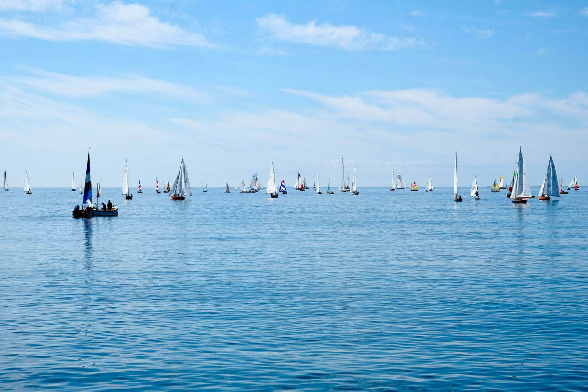After breakfast Sea Rose slipped her lines and headed for Plymouth, We did the washing up and I had to raise some orders so it was about an hour later that we left the Harbour. As we excited the Fowey Week yachts were out in force and what a joy it was to see them. There was very little wind and for this first time on this holiday we had some blue sky. It wasn't long before Linda slipped into her bikini top and got some rays as you never know when the sun will shine again (As it happened it didn't!). Very soon the pink sail was up and almost as quickly it was down again, even the pink sail needs some wind, so for the first time this holiday we needed to motor. We put the boat into tick-over hopping to catch some Mackerel.. after two hours the lines wet away and put the hammer down.