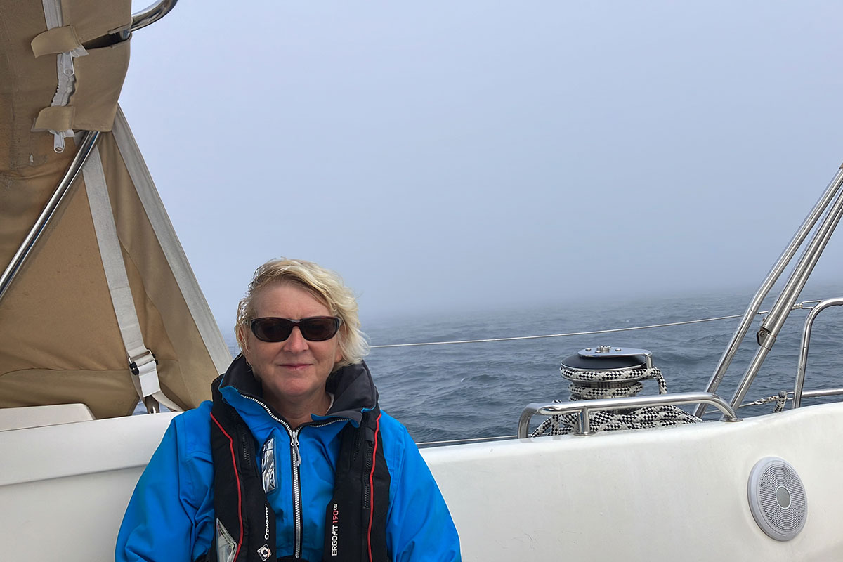 Linda slept in the saloon, which is unfortunate for me as I like to have spoken word podcasts on when I am doing my watch but this is impossible if someone is sleeping ion the saloon. The fog persisted our arrival time was still showing at 04:30 which is before daylight. As my watch continued the wind moved further back and I let out full sail and our arrival time slipped to 6am, perfect.