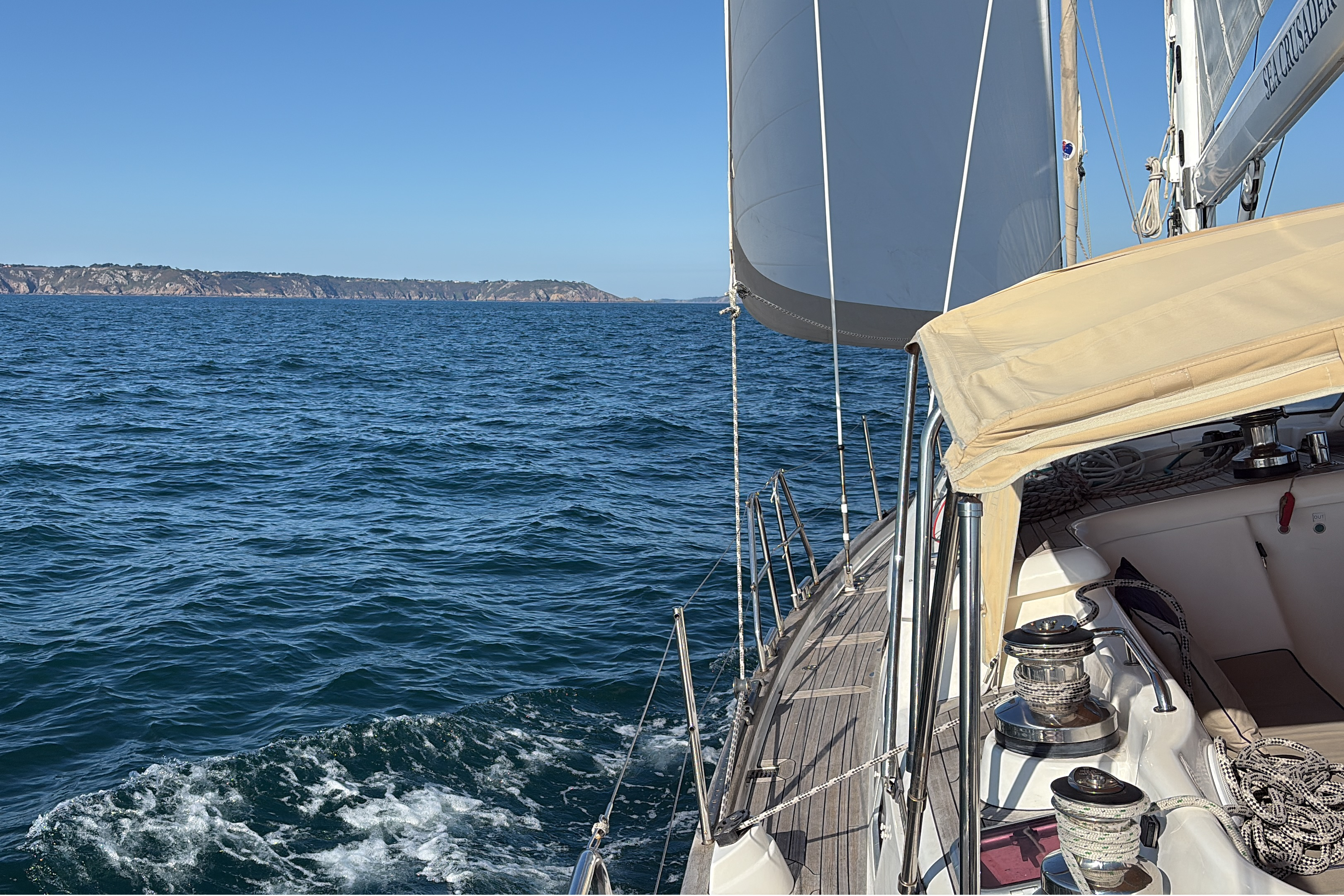 We left Roscoff for Guernsey. Yesterday we went to the immigration and checked out so today we must go. We are off to Guernsey and there is a difference of mood Nick on Bolero has consulted Predict Wind and thinks we will have to motor, I on the other hand have been monitoring Windy and have noticed that actually winds are consistently stronger than the forecast so I was confident of a good sail. Roscoff to Guernsey is about 84 miles so it is going to take 10-12 hours which means when we arrive the fuel dock will be closed. I was hoping to fill the tanks with cheap diesel so that next season we don't have to go via Guernsey.
