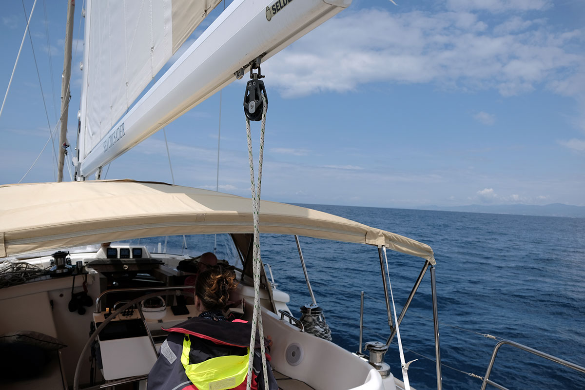 Everything went to plan, we were soon making over 8 knots and it looked like a very good passage. Soo I was being text'd by my friend Keith Jones who clearly has me tagged on Marine Traffic. As afternoon gave way to dusk the wind increased and we shortened sail, but it made no difference we were flying. After an hour we decided to head up and furl the main sail and just go on genoa alone. Now we had 32-34 knots of wind behind us and we were screaming down the huge waves. The boat felt completely safe in this direction and under control. passing Carbo de Gata the sea suddenly calmed down and the wind moderated, we were all pleased as we were still making excellent progress. This was short lived and soon the sea was as big as it was before.