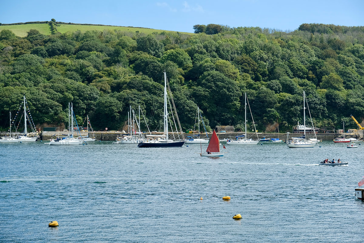 Having left Falmouth we headed for Fowey which is one of our favourite destinations. the wind was blowing strongly from the south south west so we just used the main sail and we stormed along. We were quite excited as Sea Rose had departed from Howth in Ireland and were on there way to try to get to the Plymouth fireworks. It was an ambitious challenge as they were sailing two up and Sally still has restricted movement in her shoulder following her fall last year in Salcombe.