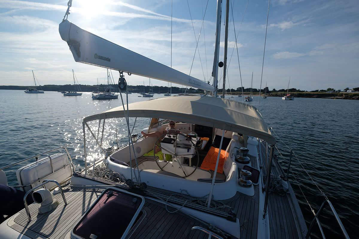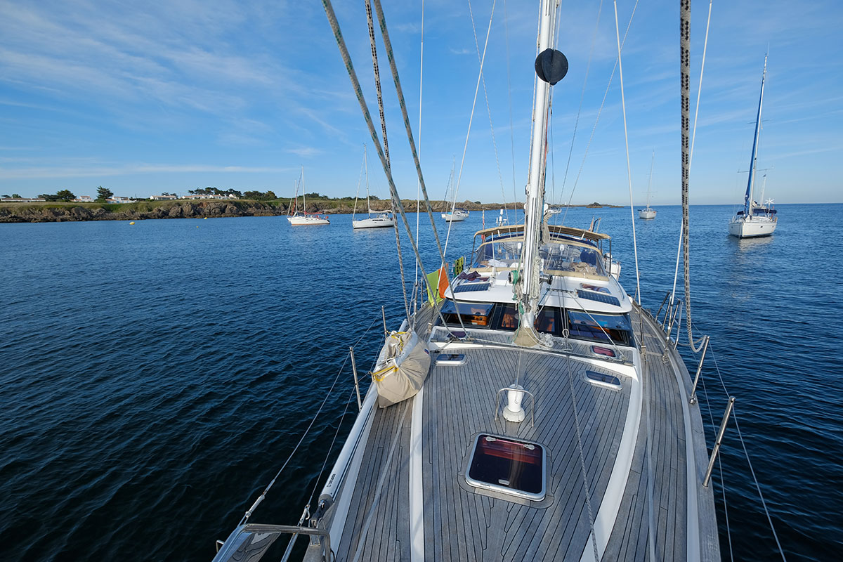We took advantage of a forecast for two days of very settled weather to anchor in a bay off the island of Ile d'Yeu in the south east corner of the island called Anse Des Vielles. We arrived at about 4pm and by that time there were around 35 boats anchored in the anchorage so we were forced to anchor a long way from the shore. We didn't mind as we were so happy to just be gently rocking at anchor and not be in a marina. That evening I cooked a rather splendid pizza and the anchorage looked like something from a Christmas card with so many anchor lights all glowing in the dark.