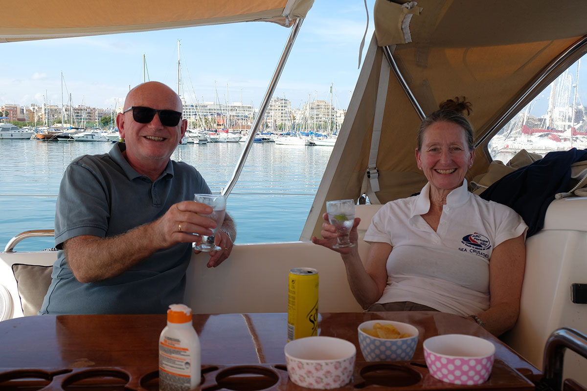 The next morning it was actions stations as the yard wanted to lift us an hour early, soon we were floating and we got stuck in. Cleaning the decks, hoisting the sails, Gwyn did the interior. By the end of the day we were exhausted and we ate on board. The next day things were coming together and I treated the decks with 2-part and by lunchtime we were ready to go. We left just before lunch with a plan to do a massive leg and go straight to Puerto de Torrevieja.